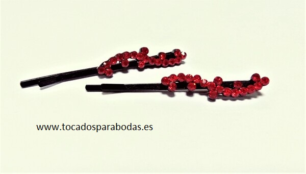 Horquilla pedrería Celia. Horquilla de color rojo. Disponible con otros diseños y cambio de matices en el tono, consulta el catálogo.