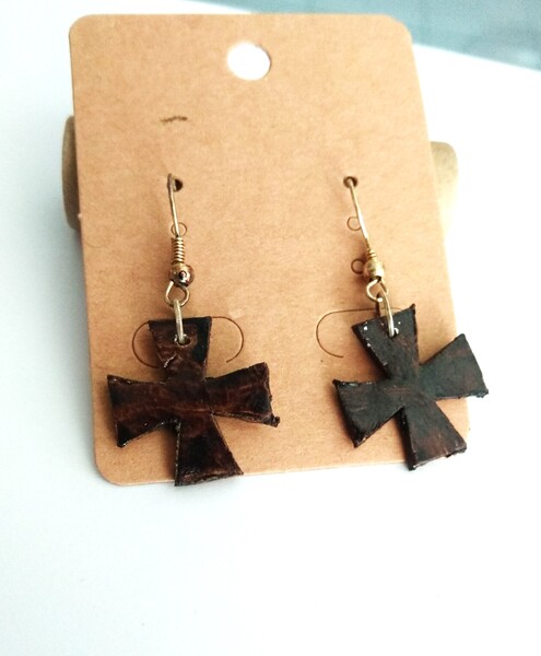 Pendientes templarios. Producto artesano de elaboración propia hecho a mano con madera y barro, con colgante hippie. Consultar grandes cantidades. Al tratarse de un producto artesano hecho a mano, no existe simetría total en los productos, pintados también a mano con pinturas anti alérgicas.